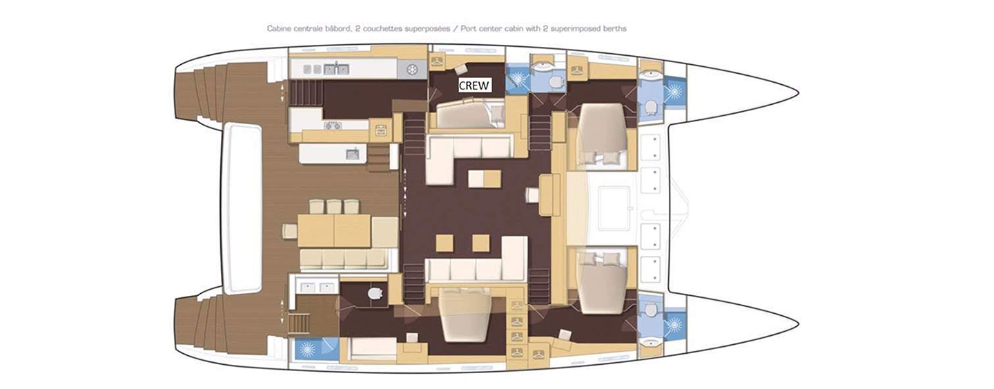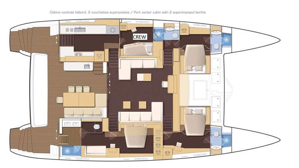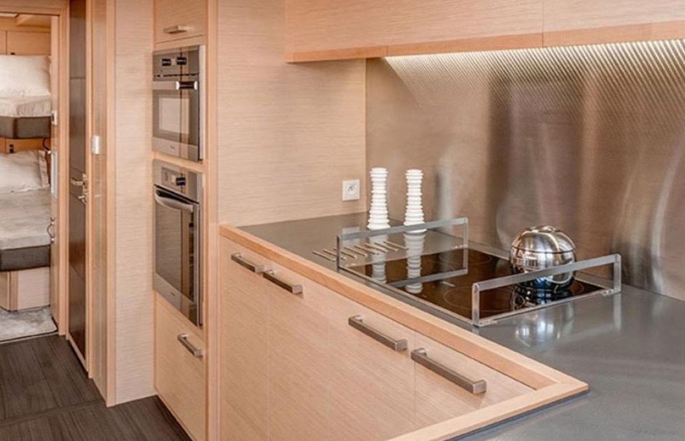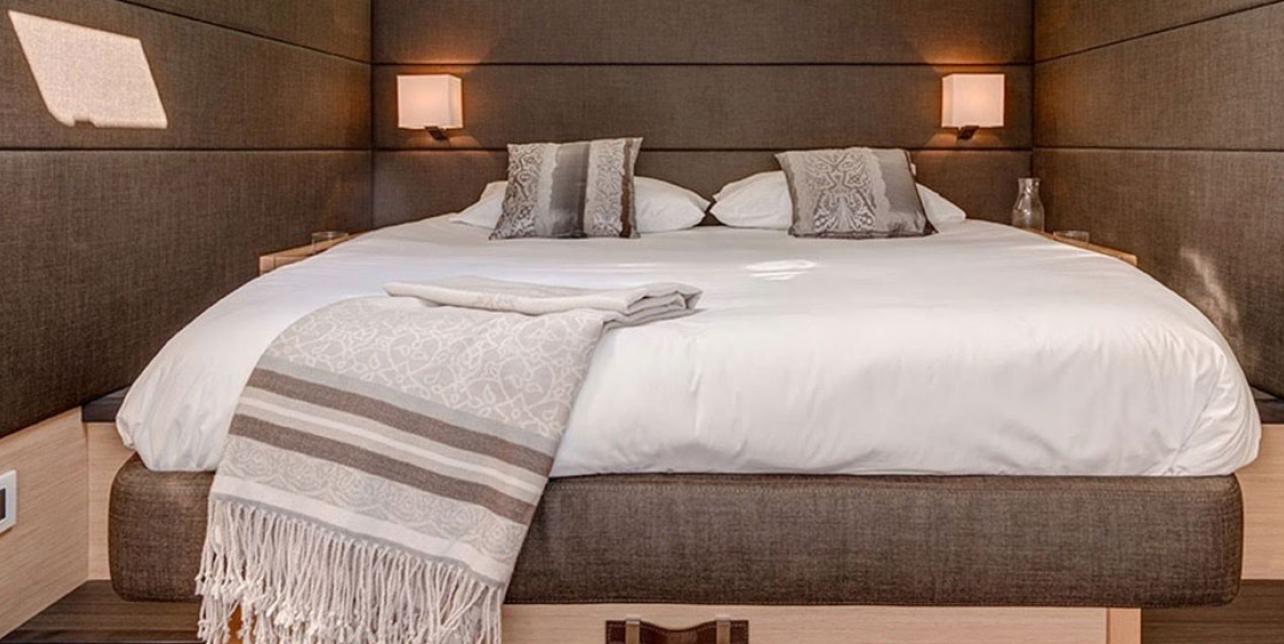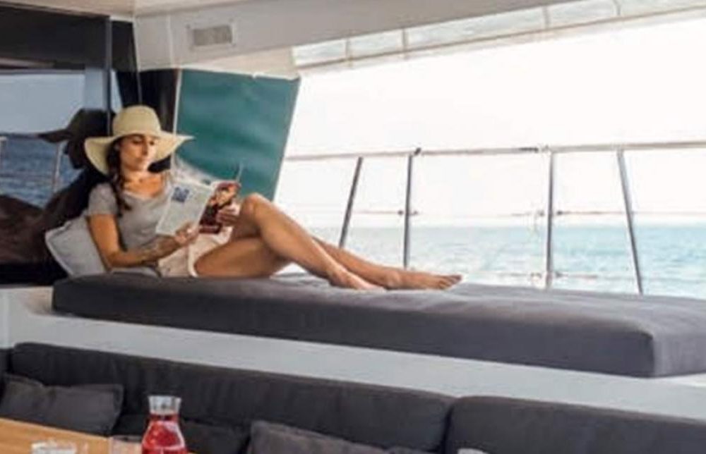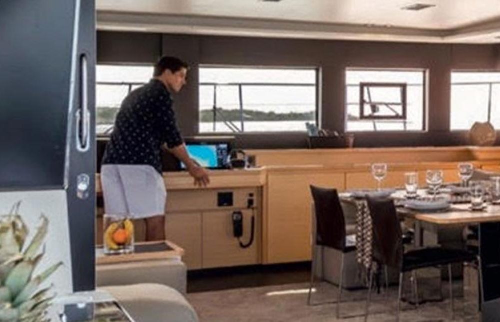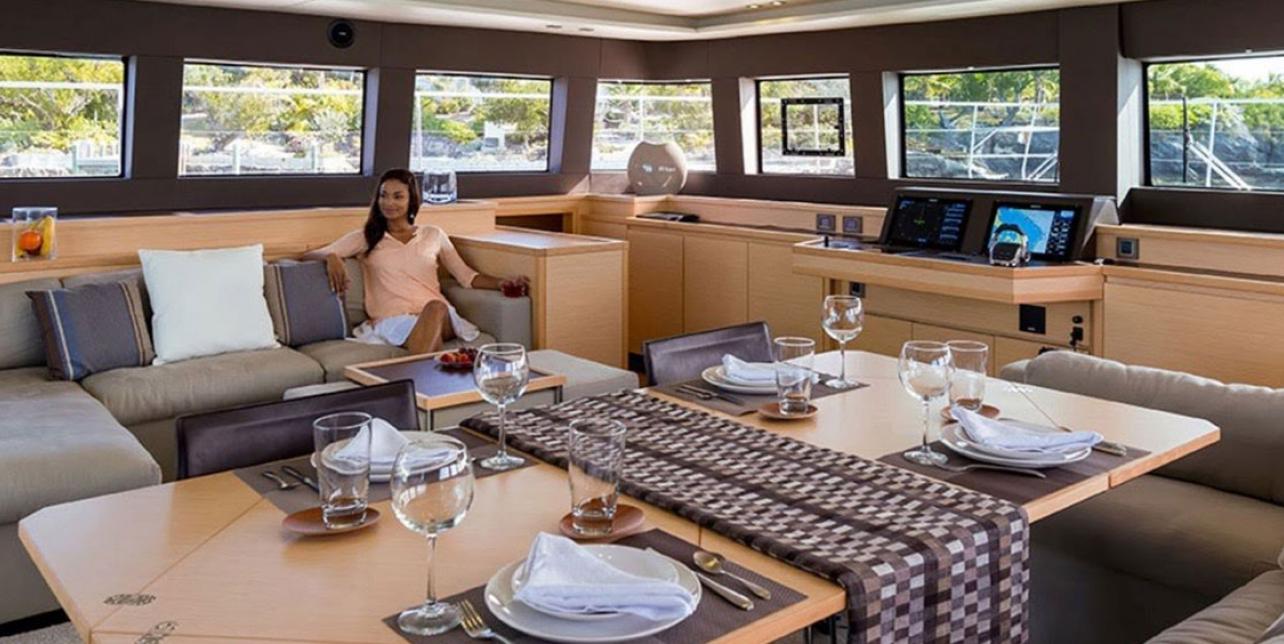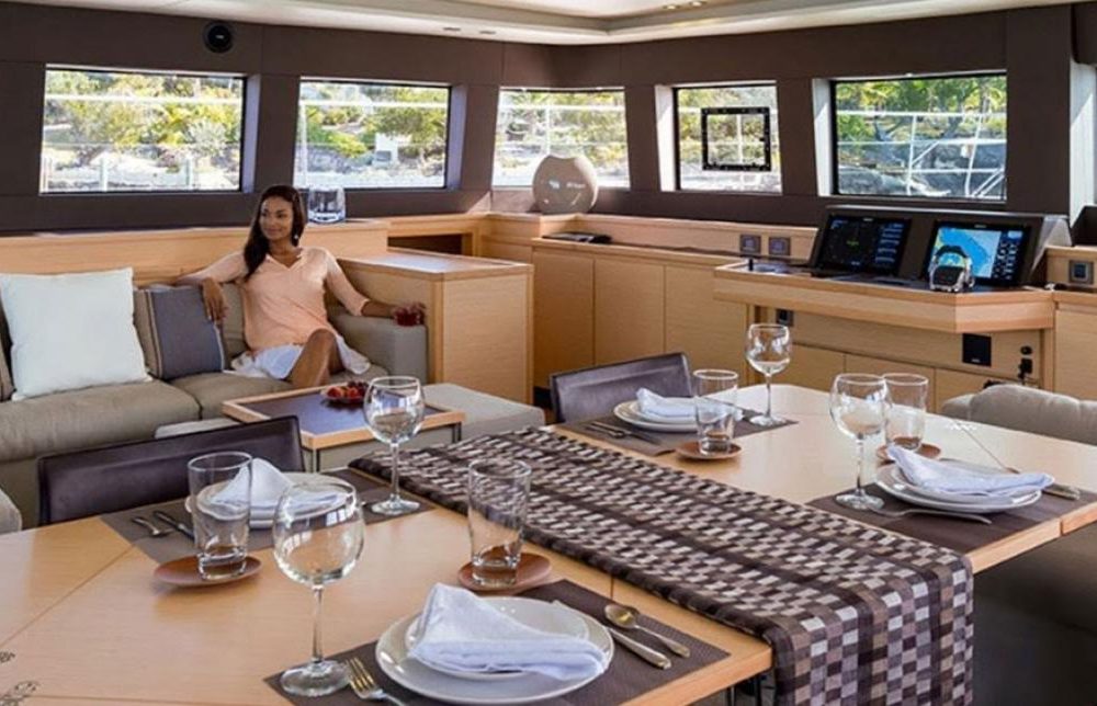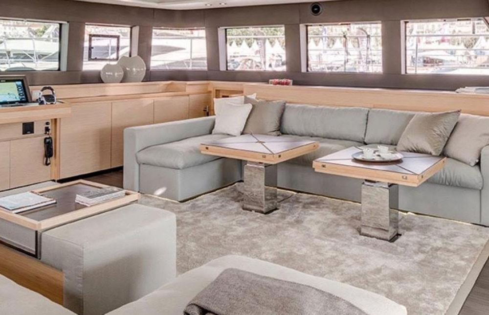 M/Y Just Marie is a Lagoon 630 – she combines the capabilities of an offshore cruiser with the luxury of a motor yacht. Building upon the success of the Lagon 620, the 630 is a worth long-distance cruiser. The residential interior, designed by Italy’s Nauta Design, is afforded plentiful space to spread out thanks to the wide body of the catamaran design. The interior is modelled after superyacht interiors, with a large saloon decorated in deep carpets, cushy couches and luxe materials.