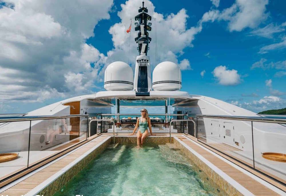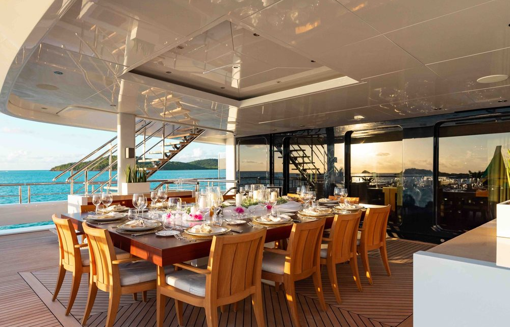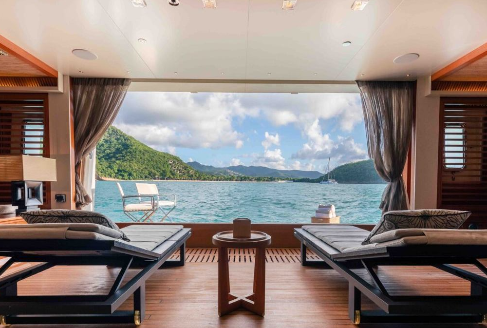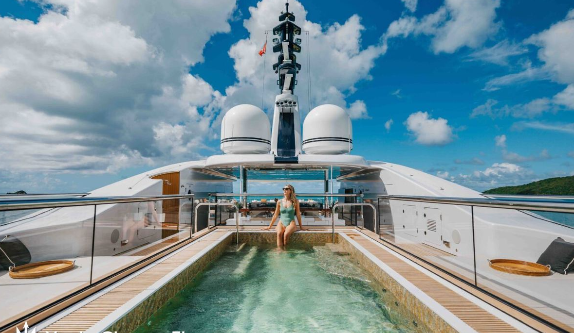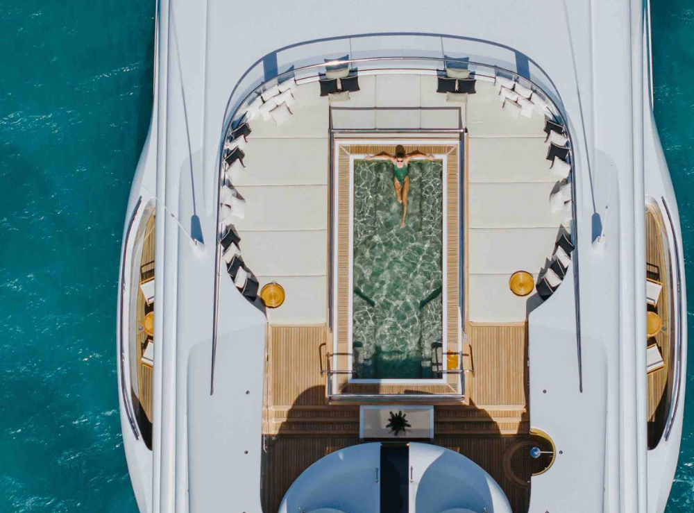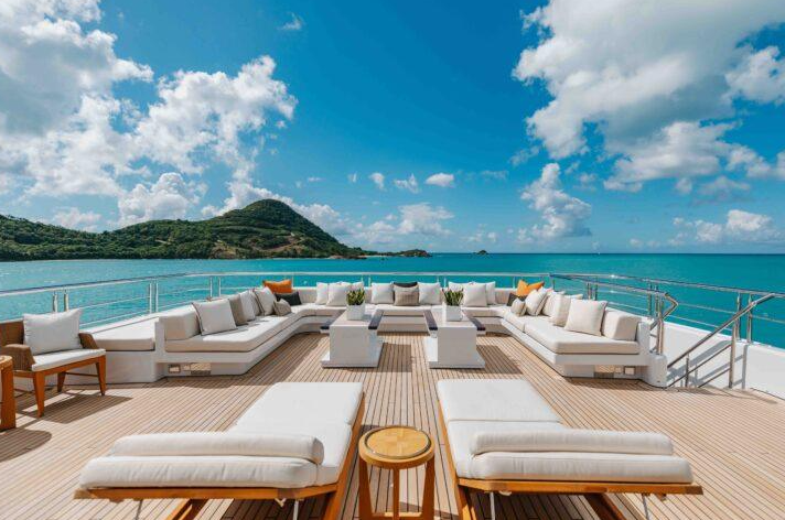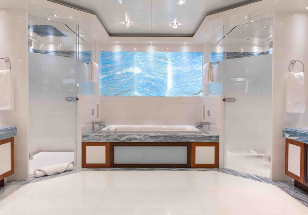 Built in 2012, Quantum of Solace is designed for exquisite indoor/outdoor living and boasts voluminous interior and exterior spaces across several decks: ideal for bronzing, lounging or entertaining. She is equipped with a spa, elevator, underwater lights, beach club and gym.