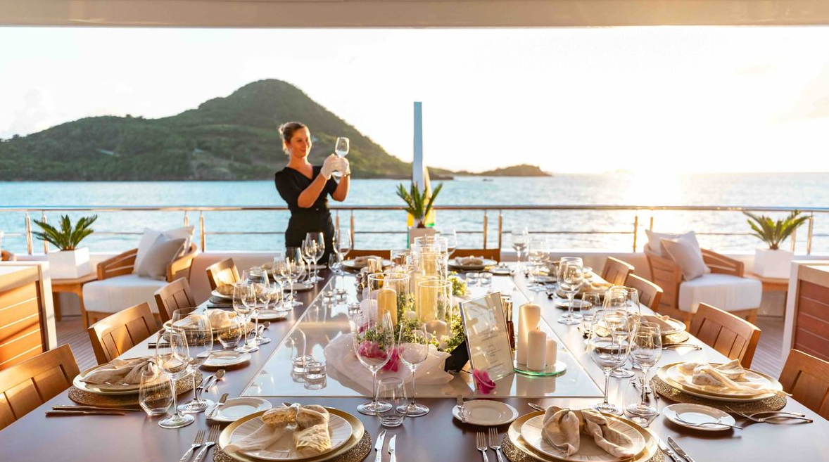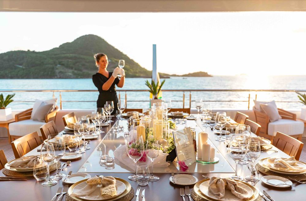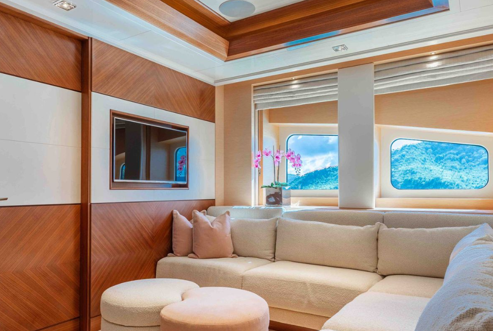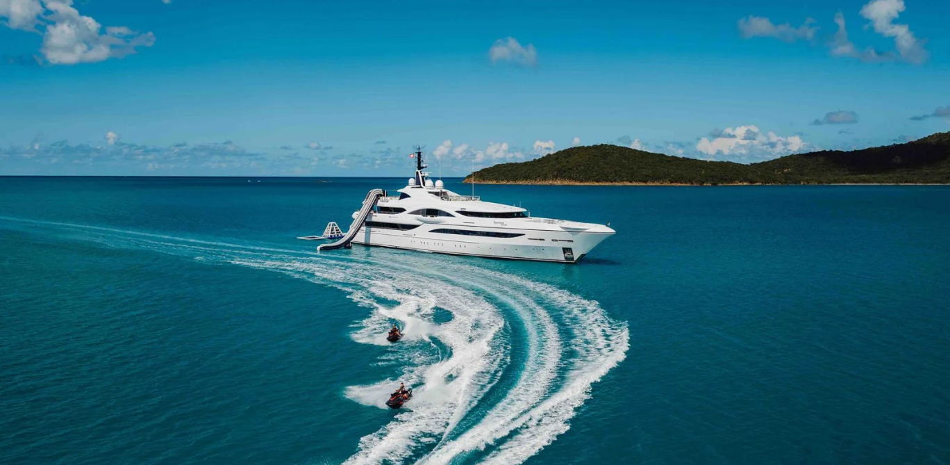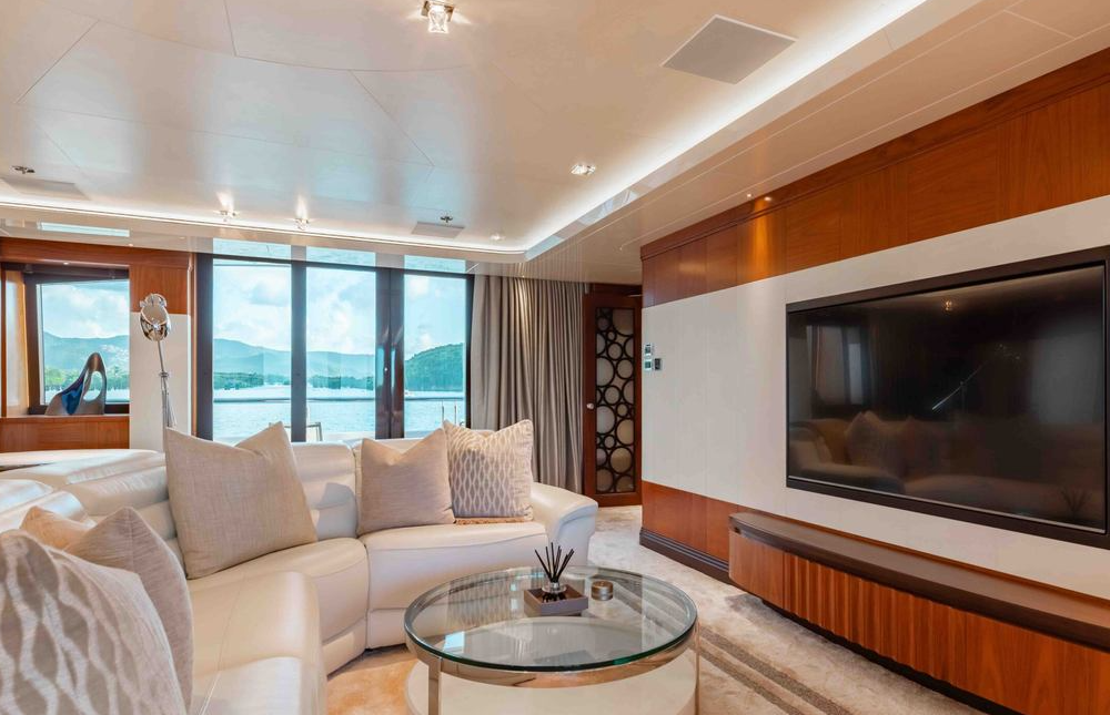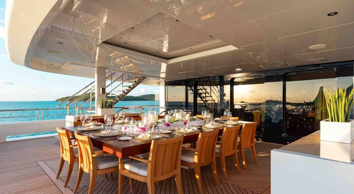 Built in 2012, Quantum of Solace is designed for exquisite indoor/outdoor living and boasts voluminous interior and exterior spaces across several decks: ideal for bronzing, lounging or entertaining. She is equipped with a spa, elevator, underwater lights, beach club and gym.
