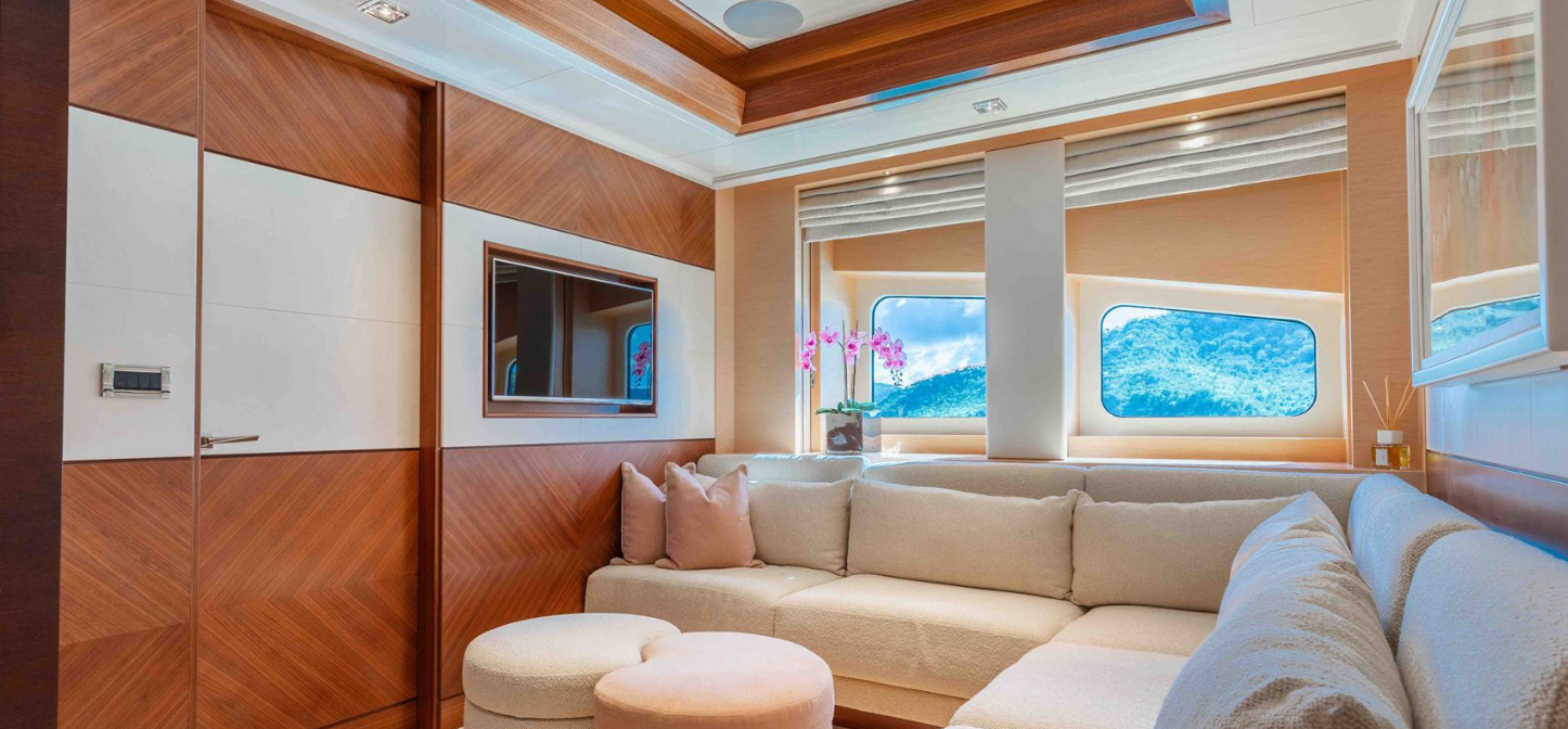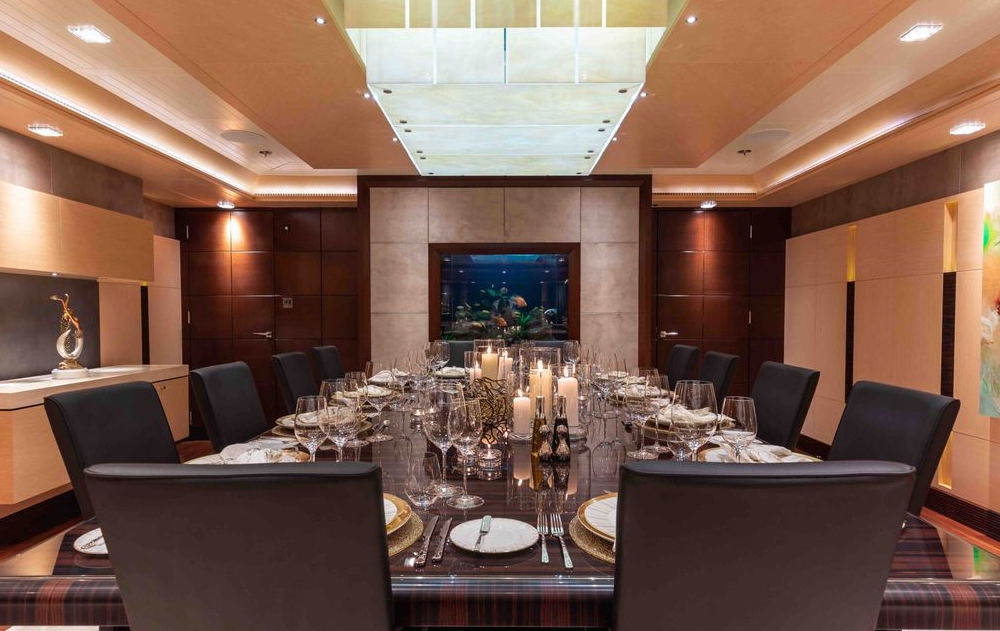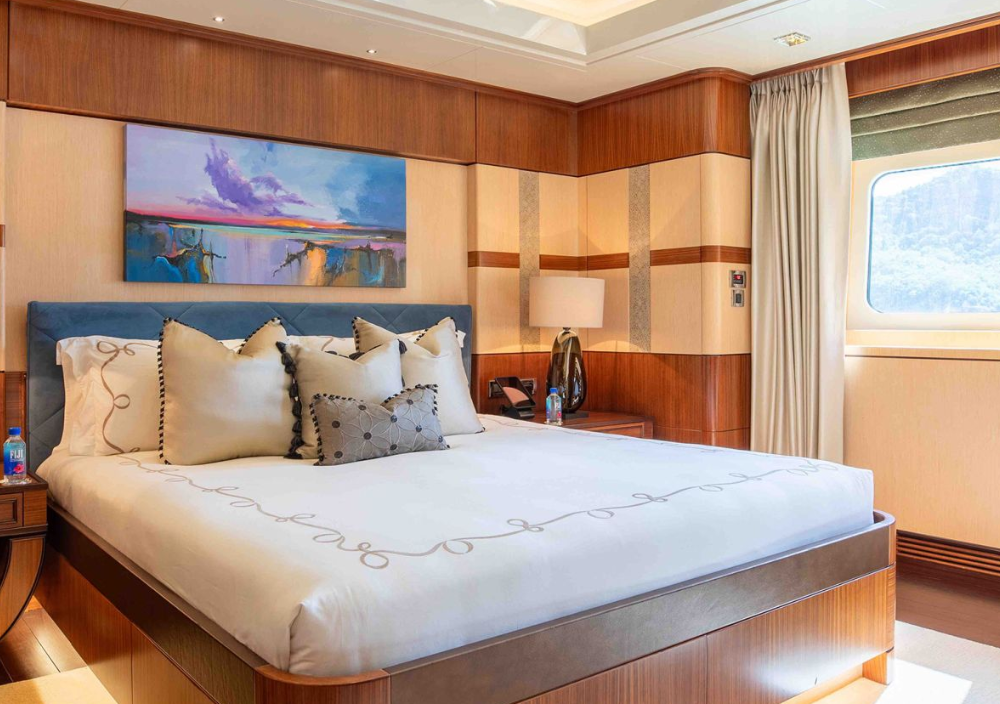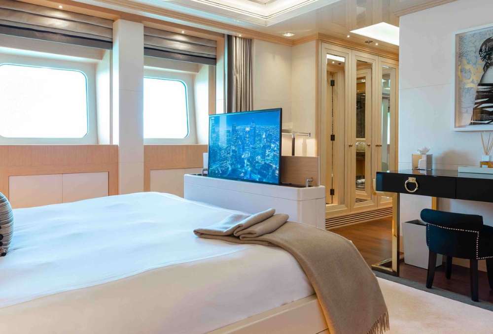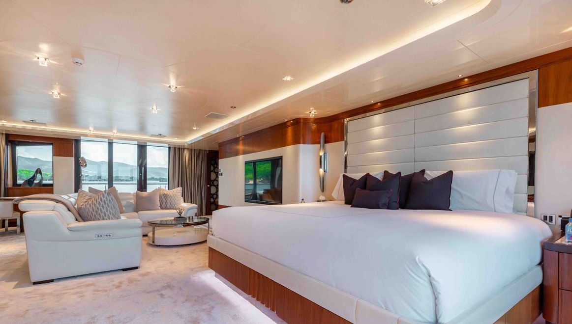 Quantum of Solace offers guest accommodation for up to 12 guests in 7 suites comprising a master suite, one VIP cabin and five twin cabins. The supremely spacious full beam master suite incorporates its own study. She is also capable of carrying up to 18 crew onboard to ensure a relaxed luxury yacht charter experience.