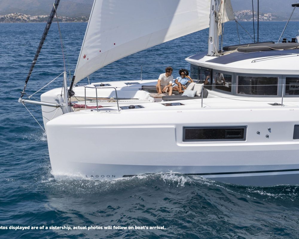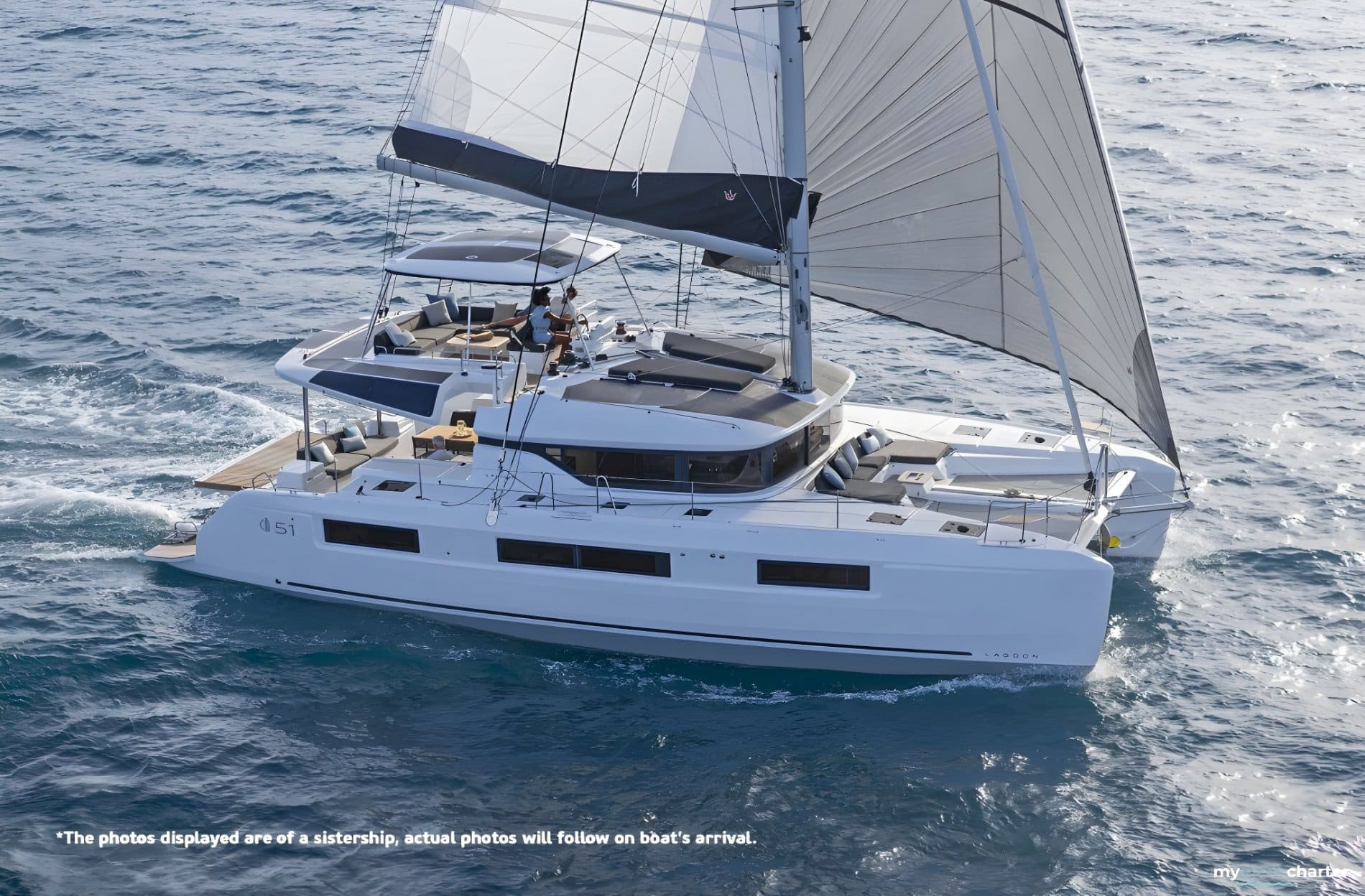 Introduced by DMA Yachting, the astonishing charter yacht EFFIE STAR is a 54 ft sailing catamaran. The primary distinction of EFFIE STAR are her absolute comfort and culinary experience. EFFIE STAR spends the summer season in Greece. She was delivered by recognized shipbuilder Lagoon in 2024. The well-planned yacht layout features 5 large cabins and easily accommodates up to 10 guests.