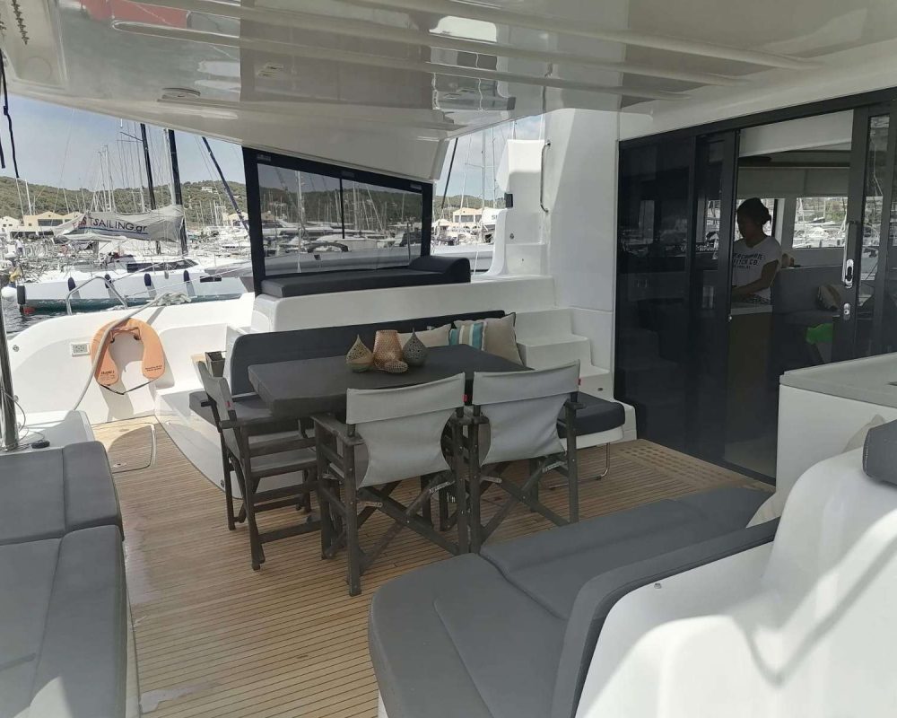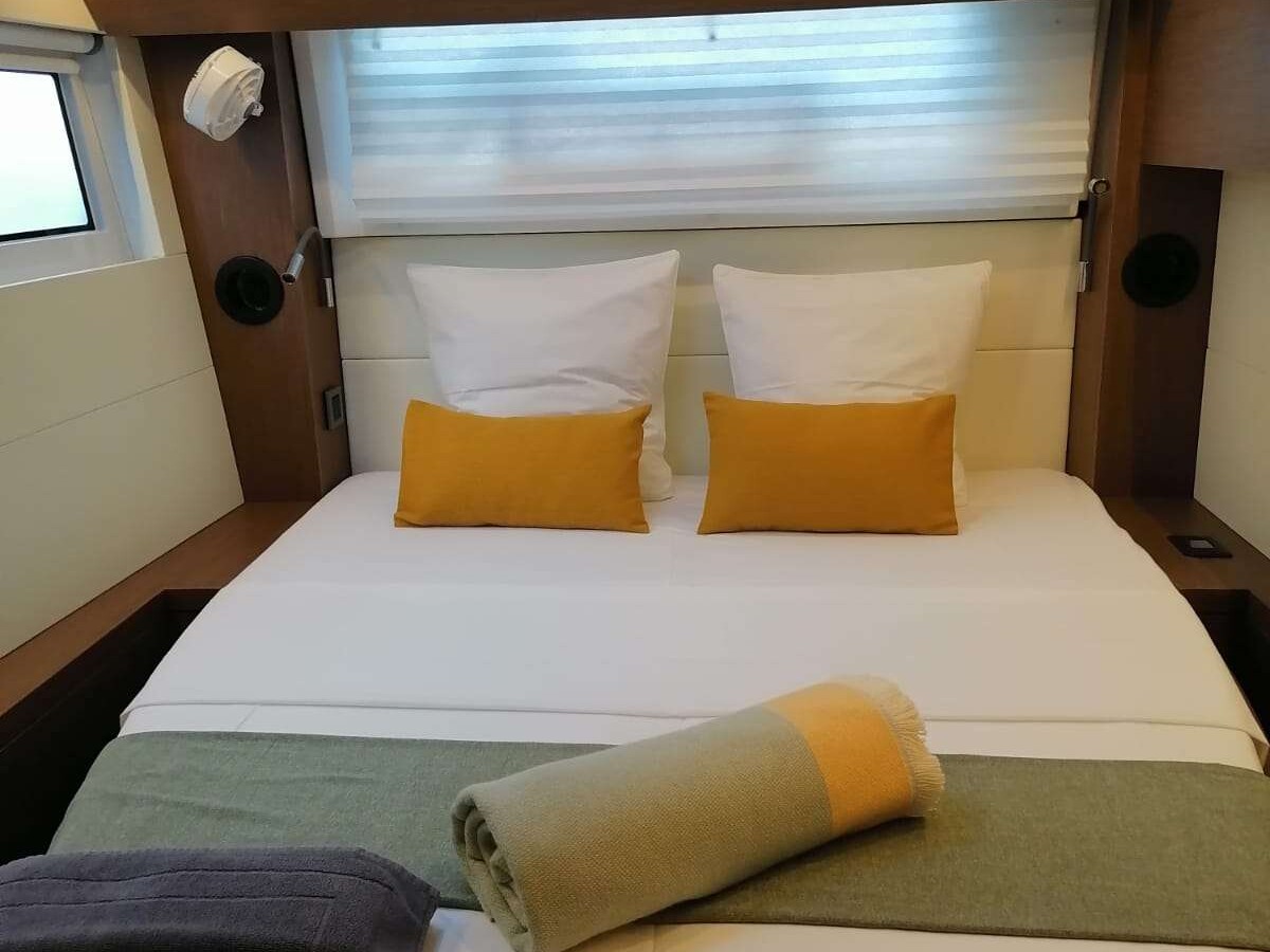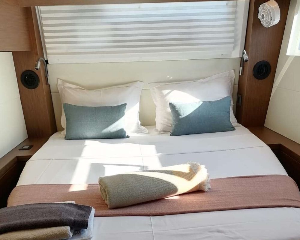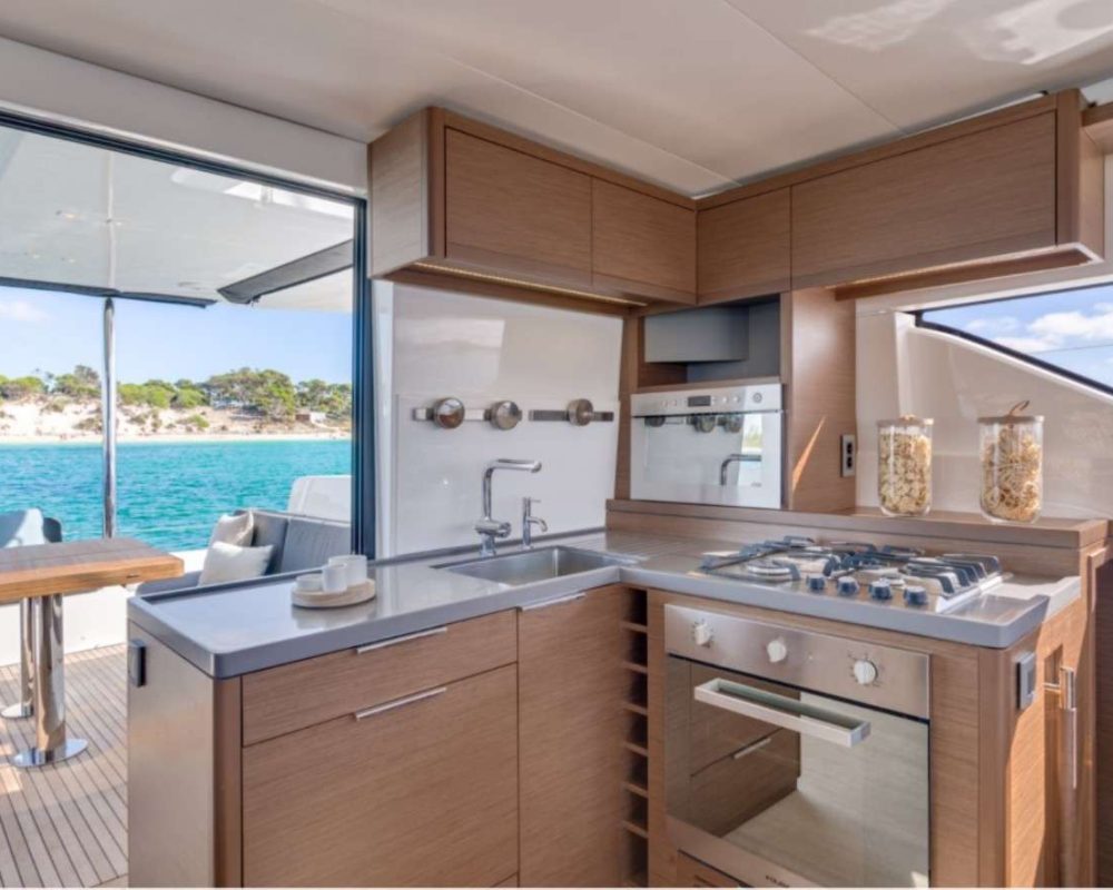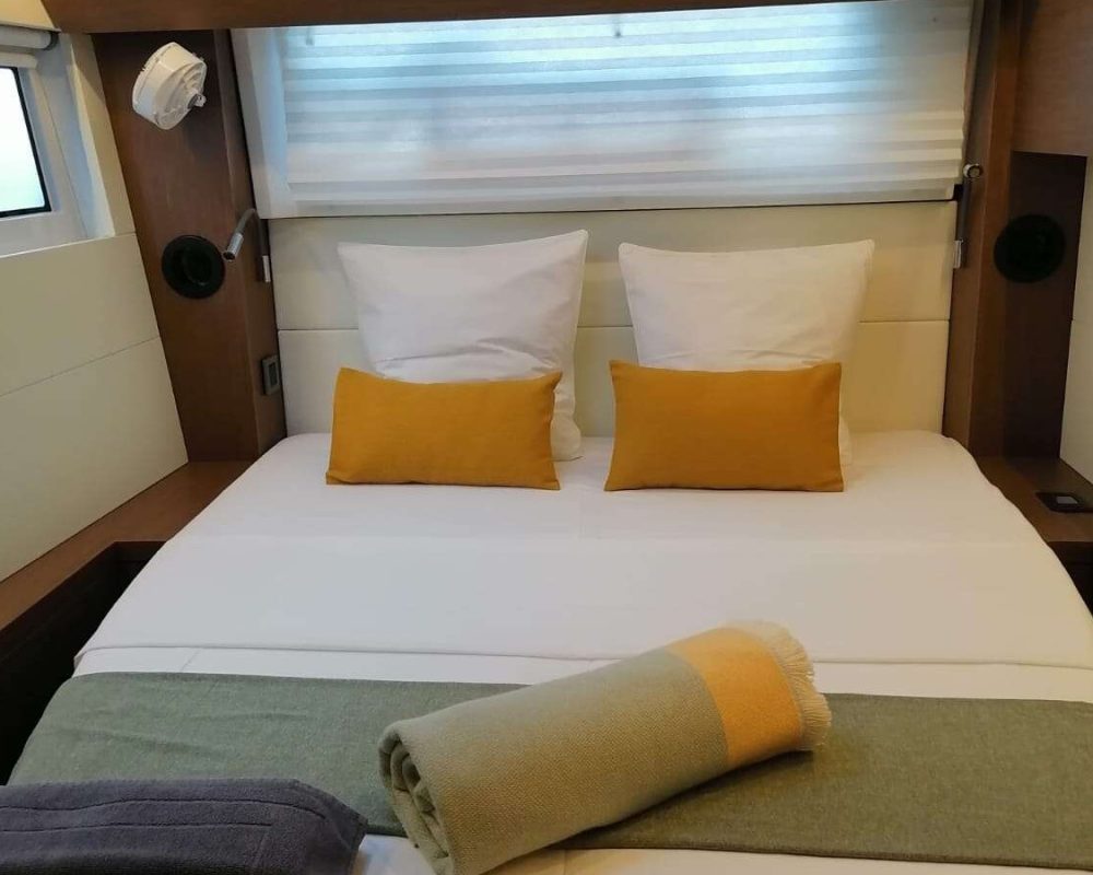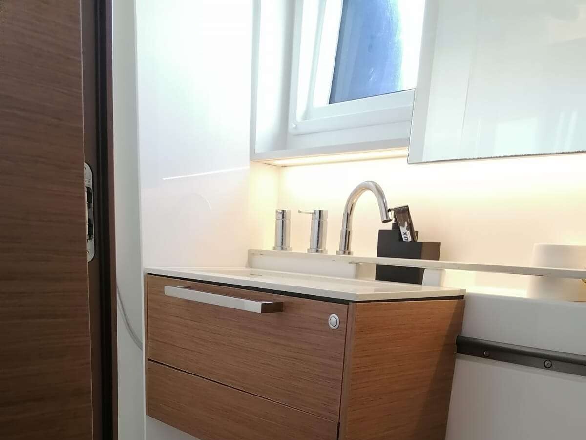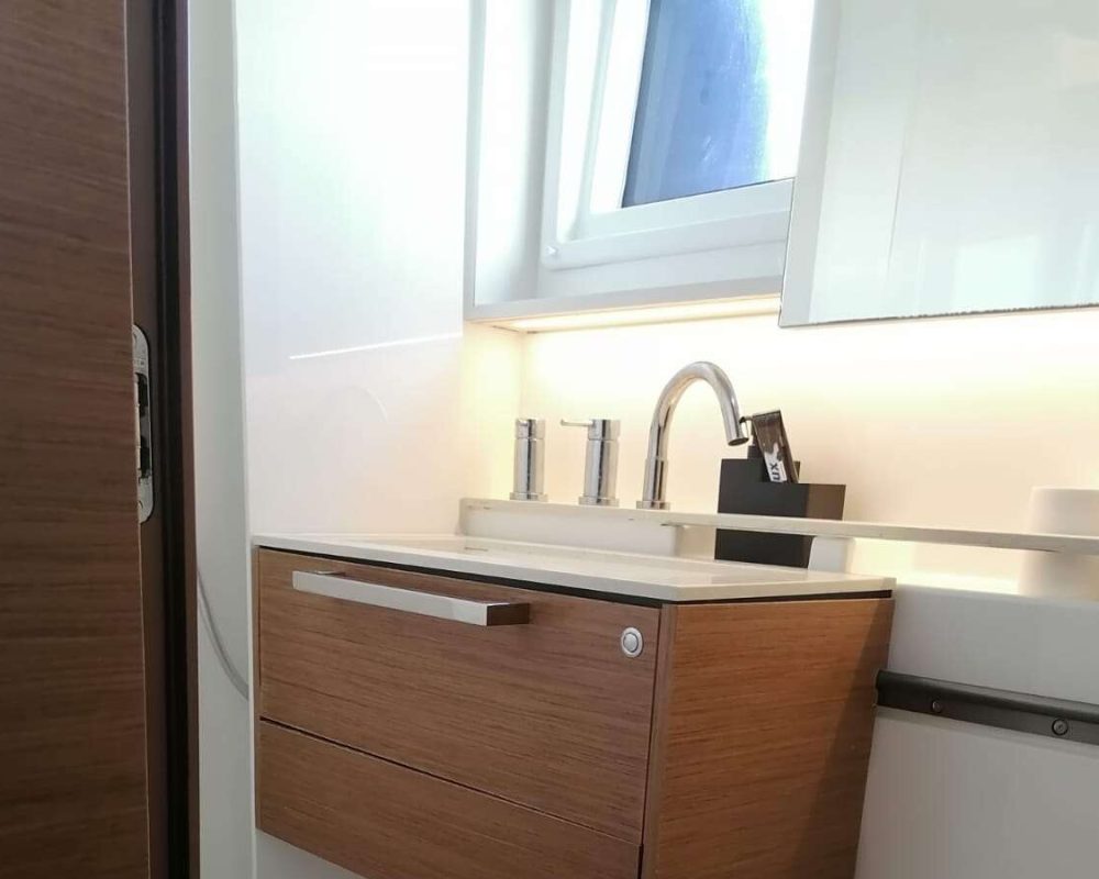 This new boat is the perfect compromise between the emblematic 450 model and the 52. She offers an attractive option to navigators in search of a large “seaworthy and modern” owner’s boat. With her new visual identity, rigging and hull design, she provides increased performance, comprising a unique brand signature. Indeed, the 50’s elegance seduces thanks to the bevelled shape of her hulls, generous volumes and panoramic views, more than ever enhanced. With unparalleled accommodation possibilities, this new model is available in three, four or even… six cabins!