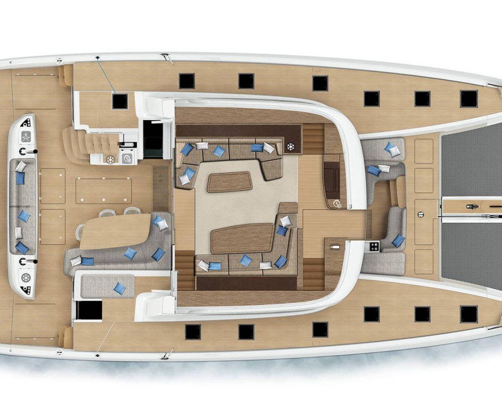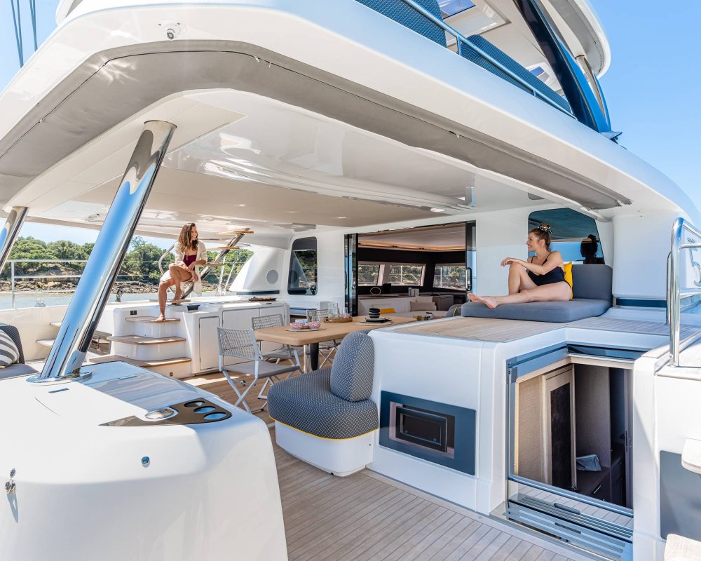 Stepping aboard via the aft platform, you cannot help but notice the sheer comfort and simplicity that pleases the eye. Ease of moving from one space to another, with the sheltered cockpit acting as a hub for most outdoor activities.