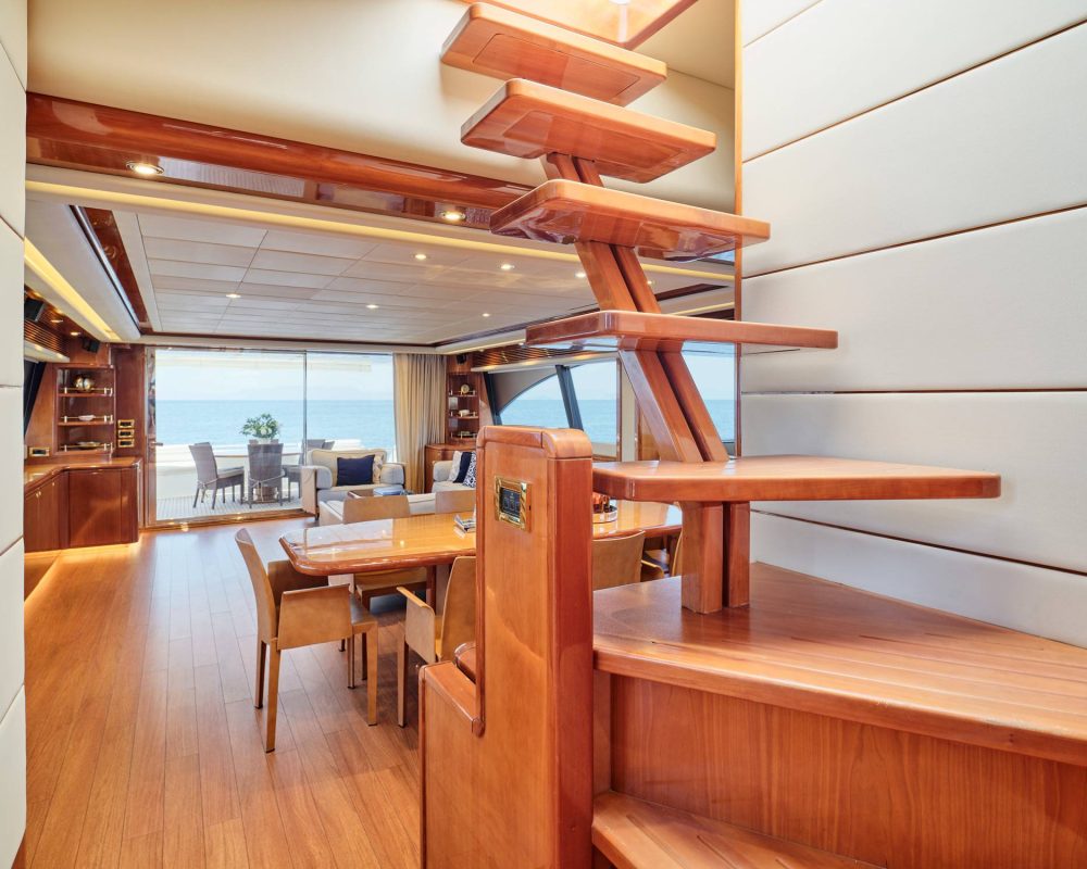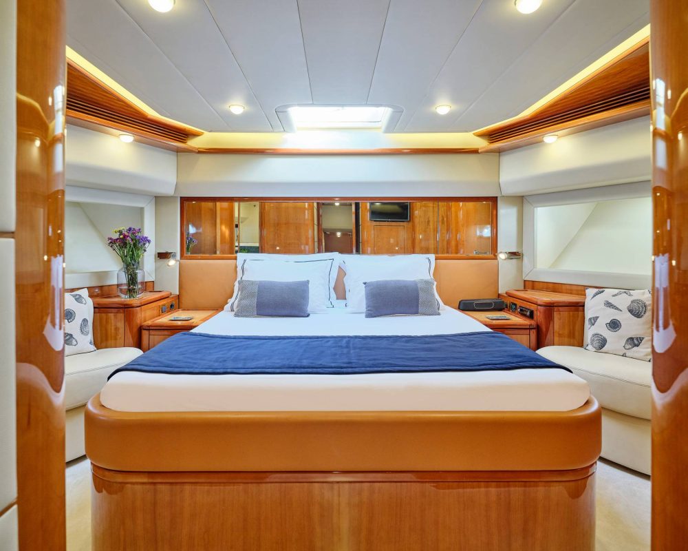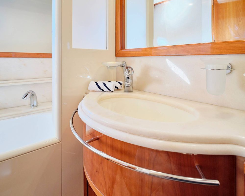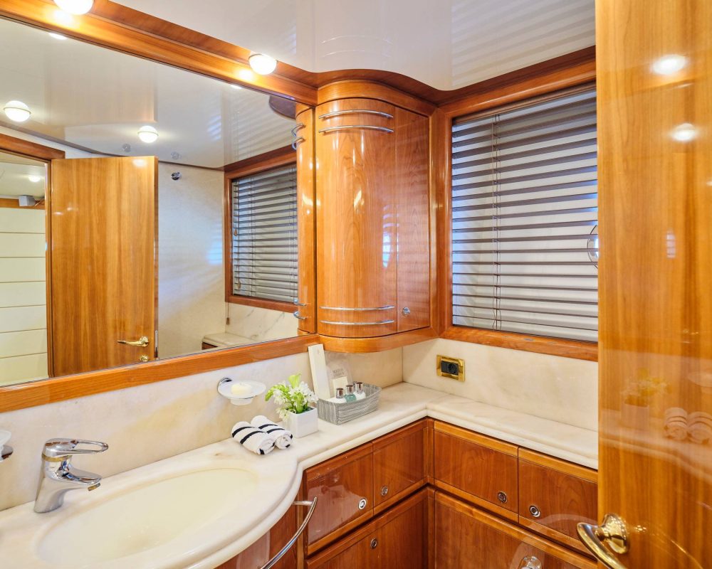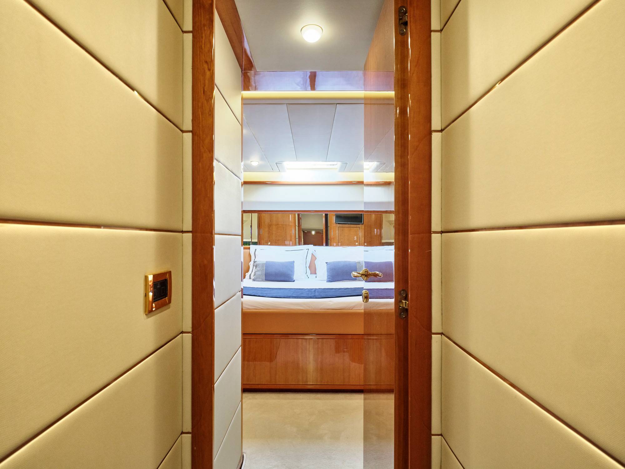 The 88 ft/26m Ferretti 880 motor yacht Estia Yi was built in 2004 by Ferretti and she has been through an extensive full refit in 2021. M/Y Estia Yi offers 4 lavish staterooms that accommodate up to 8+1 guests supercomfortably. Her layout includes a master suite, a VIP cabin and 2 twin cabins (one with an extra pullman berth), all with ensuite facilities. Her professional and experienced crew of 5 members take care of Estia Yi’s guests on board promising a once in a lifetime yachting experience. Among other amenities the M/Y Estia Yi features a spacious sundeck fully equipped with large sun beds for lounging, an alfresco dining area and a Jacuzzi. In addition, she provides an aft garage which opens and transformed into a swim platform ideal for beach club or romantic dining area. Estia Yi’s impressive leisure and entertainment facilities make her the ideal charter yacht for socializing and entertaining with family and friends