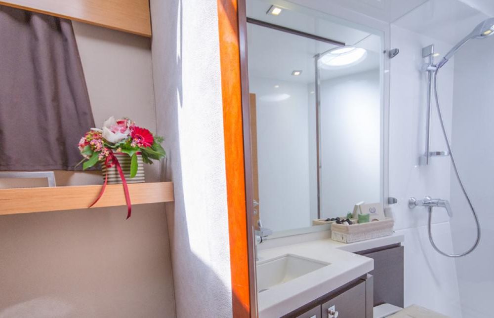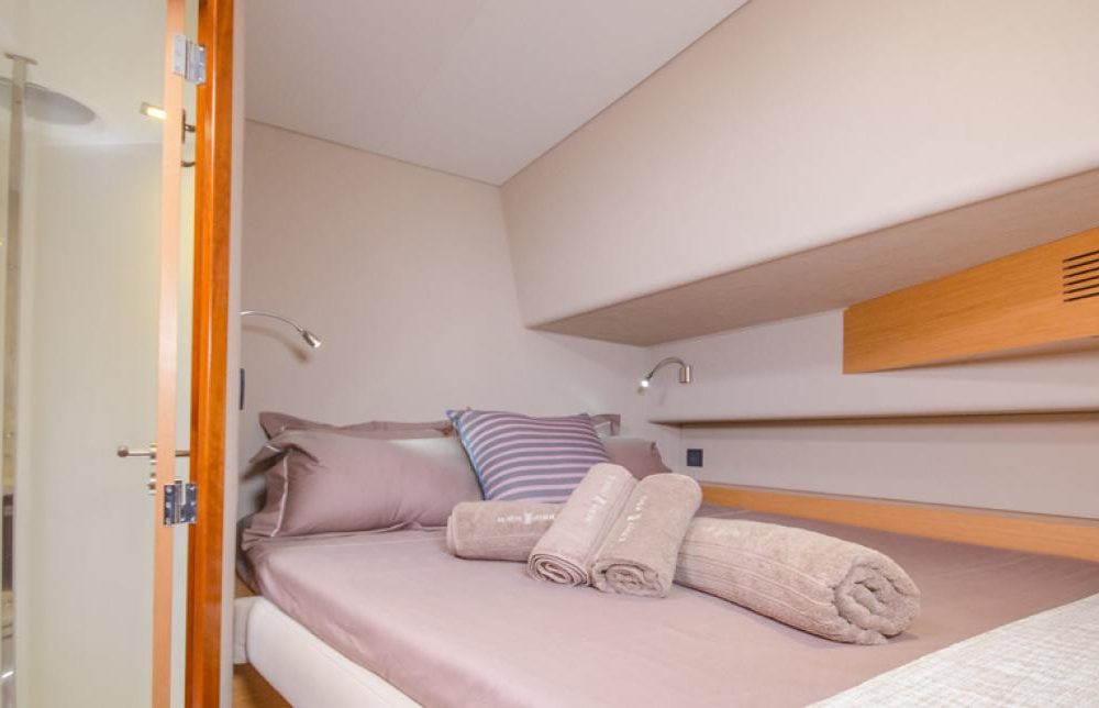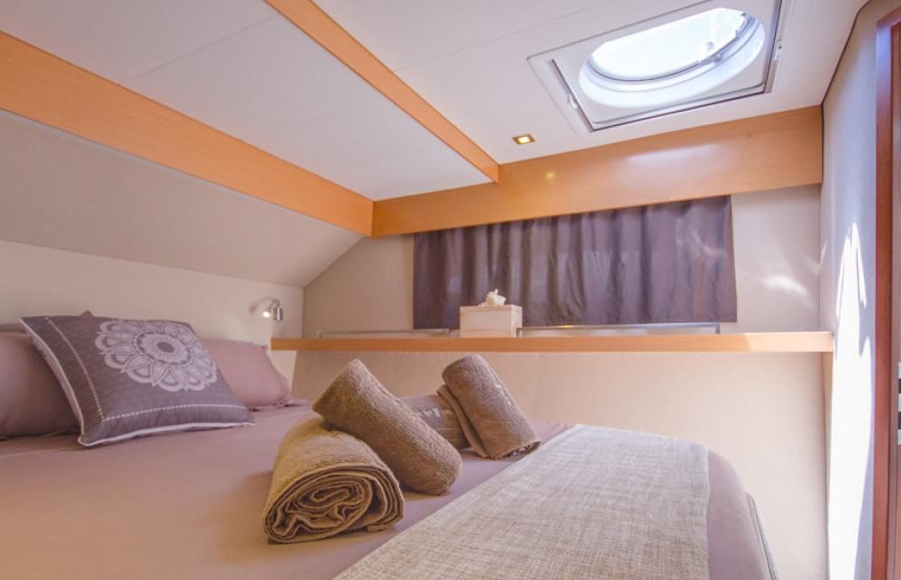 The fore deck is the absolute ideal area for sun-bathing on comfortable sun mattresses, a trampoline, and the best location, if you see any dolphins swimming alongside the boat. The Fly-bridge is the ultimate favourite place for enjoying a glass of champagne accompanied by a finger-licking hors d’oeuvre, while gazing onto the horizon and harmoniously savouring the dreamlike scenery during a sunset.