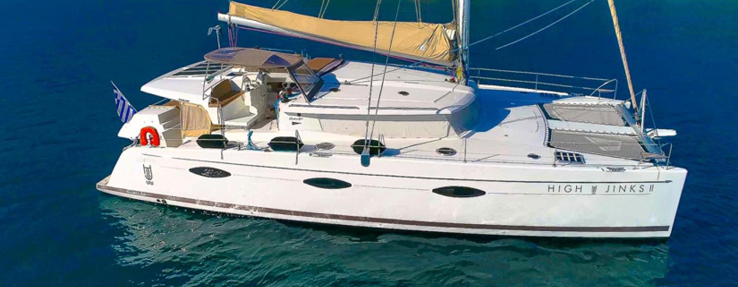 The sailing catamaran HIGH JINKS SANYA 57 will bring you to the most beautiful places in the Mediterranean while traveling in all comfort and privacy. Guided by her crew you will yourself discover the magnificent islands, nature and culture and most importantly the magnificent clarity of the Greek crystal blue waters.